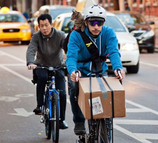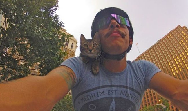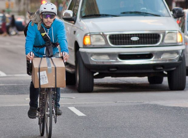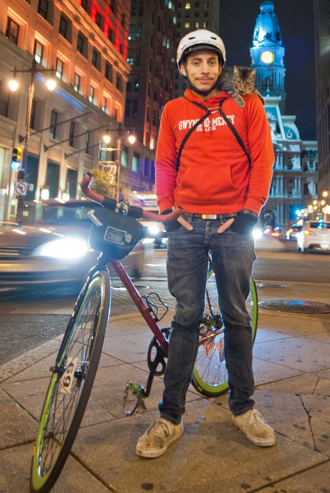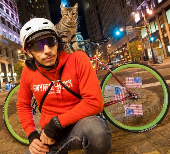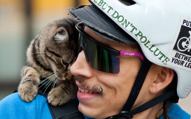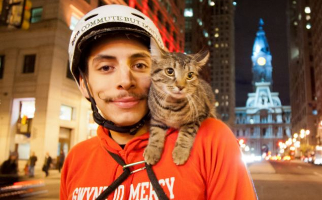 Ο25χρονος κούριερ και το έξι μηνών γατάκι του η Mary Jane έχουν βάλει ως σκοπό να καλύψουν μαζί με το ποδήλατό τους απόσταση 100 μιλίων σε λιγότερο από ένα χρόνο.