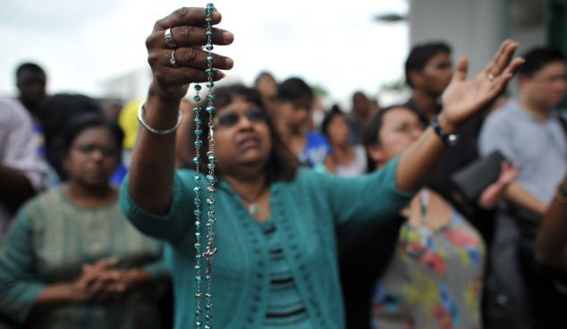 Πιστοί καθολικοί συρρέουν έξω από το ιατρικό κέντρο Sime Darby στην Κουάλα Λουμπούρ της Μαλαισίας για να προσευχηθούν, καθώς ισχυρίζονται ότι ως εκ θαύματος η Παρθένος Μαρία εμφανίστηκε σε ένα… παράθυρο του κτιρίου.