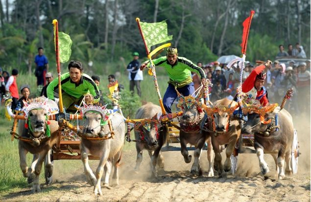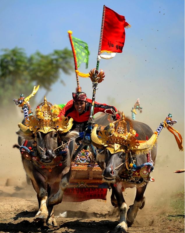 Εκ πρώτης όψεως θυμίζει αρματοδρομία της αρχαίας Ρώμης, όμως αυτό το περίεργο αγώνισμα λαμβάνει χώρα στο παρόν και στο εξωτικό Μπαλί της Ινδονησίας.