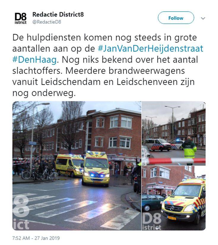 Σε ανακοίνωσή της, η πυροσβεστική υπηρεσία της Χάγης αναφέρει ότι επτά άνθρωποι χρειάστηκε να διακομιστούν στα πλησιέστερα νοσοκομεία.