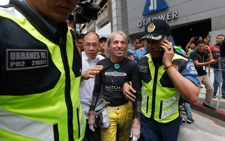 Ο 56χρονος Alain Robert σκαρφάλωσε στον 47 ορόφων πύργο της Μανίλα (GT International Tower) με τα γυμνά του χέρια, βάζοντάς τον κι αυτόν στην πλούσια τροπαιοθήκη του, πλάι στον Πύργο του Άιφελ, τον θεόρατο Burj Khalifa των 828 μέτρων του Ντουμπάι και άλλους πολλούς.