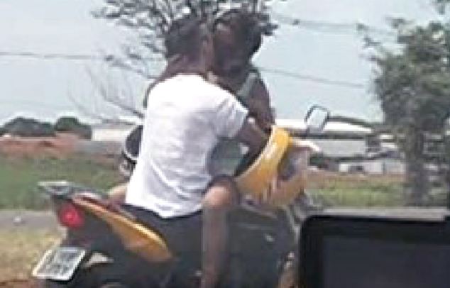 Οι δύο αναβάτες μιας μοτοσικλέτας αποφάσισαν να αποδείξουν τον έρωτά τους, εν κινήσει και άρχισαν να φιλιούνται περιπαθώς, στη μέση του αυτοκινητοδρόμου και ενώ το δίκυκλο έτρεχε με 80 χιλιόμετρα την ώρα.
