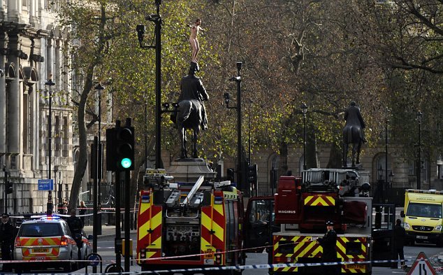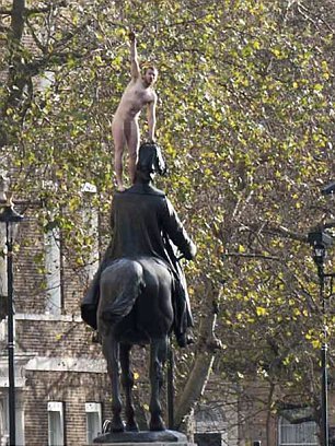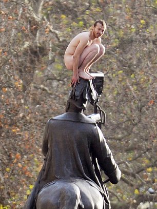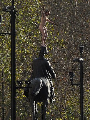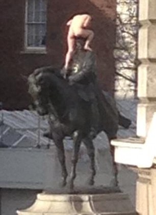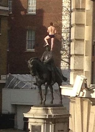 Ο άντρας σκαρφάλωσε στο ύψους 10 μέτρων άγαλμα και πέταξε τα ρούχα του! Παρά τις χαμηλές θερμοκρασίες έμεινε επάνω στο ιστορικό άγαλμα του πρώτου Δούκα του Cambridge και μακρινού ξαδέρφου της βασίλισσας Ελισάβετ, για περισσότερο από τρεις ώρες!