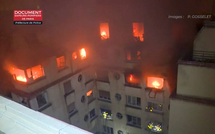 Η γαλλική τηλεόραση μετέδωσε βίντεο με τις φλόγες να βγαίνουν από τα παράθυρα του κτιρίου.