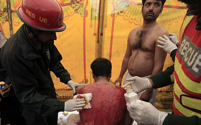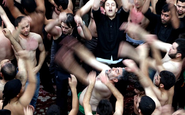Αφού ακόνισαν και καυτηρίασαν τις λάμες για να αποφύγουν οποιαδήποτε μόλυνση και έβρασαν πολλά καζάνια γάλα για να αλείψουν στη συνέχεια τις πληγές τους οι μουσουλμάνοι συμμετείχαν στην ιεροτελεστία προς τιμήν του ιμάμη Χουσεΐν, εγγονού του προφήτη Μωάμεθ.