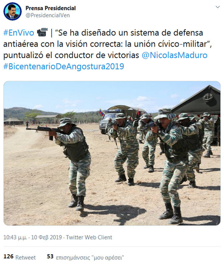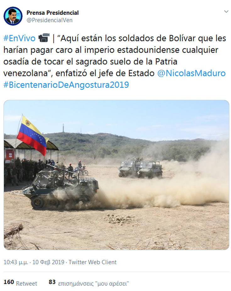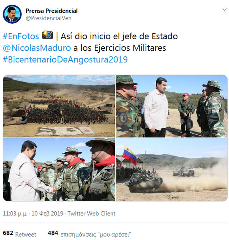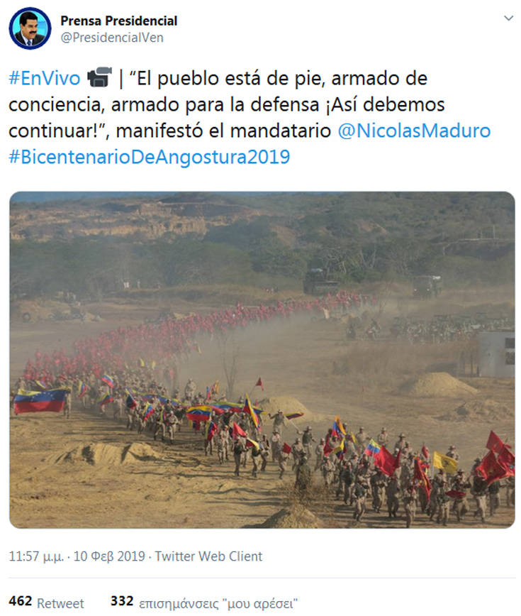 — Nicolás Maduro (@NicolasMaduro) 10 Φεβρουαρίου 2019