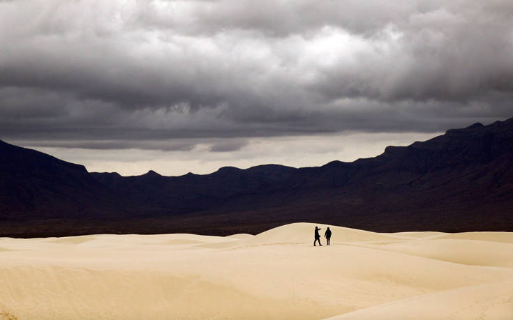 Τουρίστες περπατούν στο Εθνικό Μνημείο White Sands, κοντά στο Alamogordo του Νέου Μεξικού, που βρίσκεται σε υψόμετρο 1291 μέτρων.