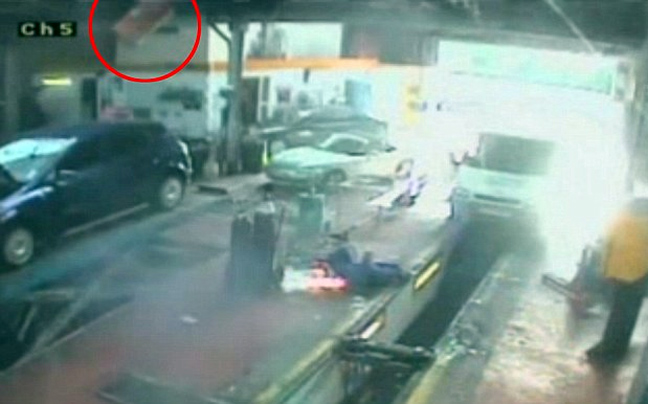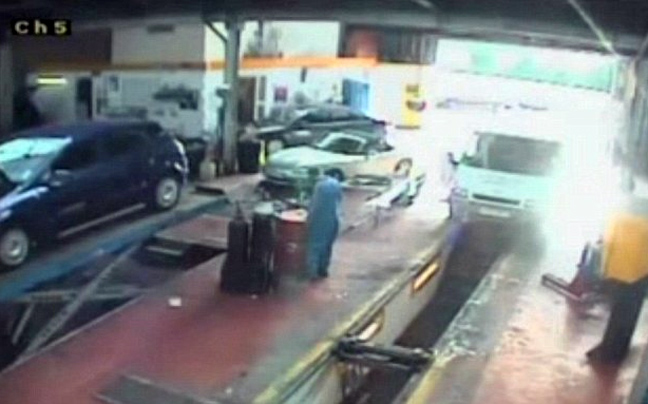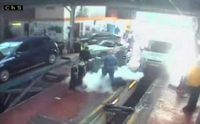 Την τρομακτική στιγμή που βαρέλι πετρελαίου εκρήγνυται τραυματίζοντας εργάτη κατέγραψαν κάμερες ασφαλείας σε εγκαταστάσεις ελέγχου αυτοκινήτων στο Suffolk της Βρετανίας.