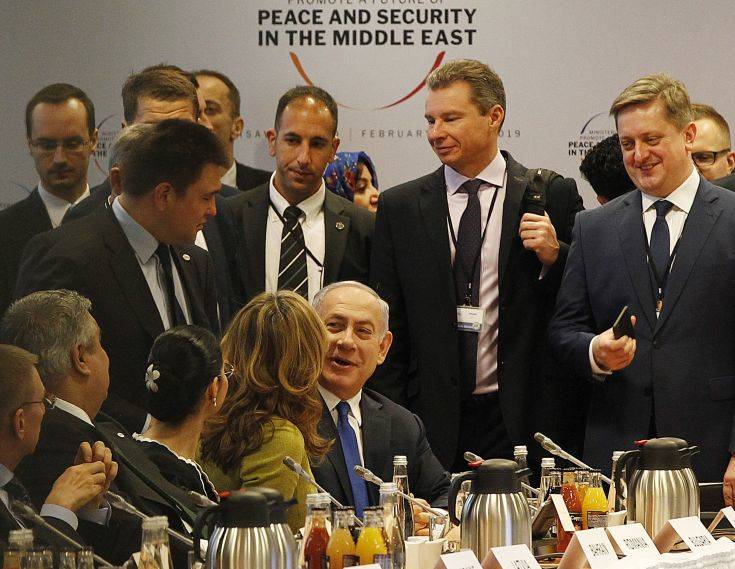 Στο δείπνο που παρατέθηκε χθες το βράδυ κατά την έναρξη της διήμερης αυτής διάσκεψης στην πολωνική πρωτεύουσα, οι μετέχοντες υπογράμμισαν ότι ο Νετανιάχου βρέθηκε στο ίδιο τραπέζι με υψηλόβαθμους αξιωματούχους της Σαουδικής Αραβίας, των Ηνωμένων Αραβικών Εμιράτων και του Μπαχρέιν – το οποίο δεν έχει διπλωματικές σχέσεις με το Ισραήλ, αλλά δείχνει την ίδια αδιαλλαξία με αυτό απέναντι στο Ιράν.