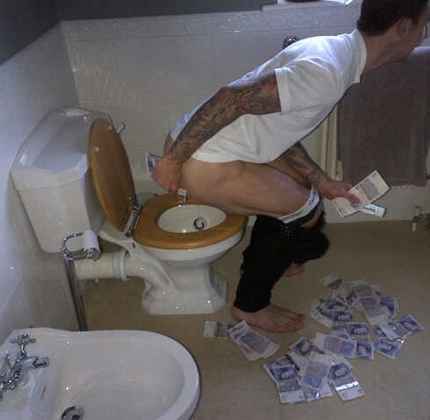 Σάλο έχει προκαλέσει στη Βρετανία η φωτογραφία του παίχτη της Γουέστ Μπρομ Liam Ridgewell. Ο αμυντικός… σκουπίζεται σε τουαλέτα με χαρτονόμισμα 20 λιρών, την ώρα που στο έδαφος βρίσκονται περίπου 1000 λίρες σε μετρητά!