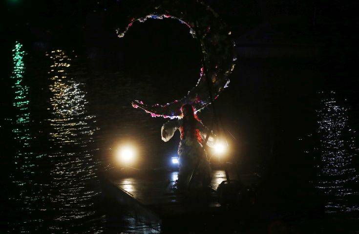 Οι θεατές παρατάχθηκαν στις όχθες, την ώρα που περίτεχνα διακοσμημένες βάρκες, με τη συνοδεία μουσικής, διέπλεαν το κανάλι.