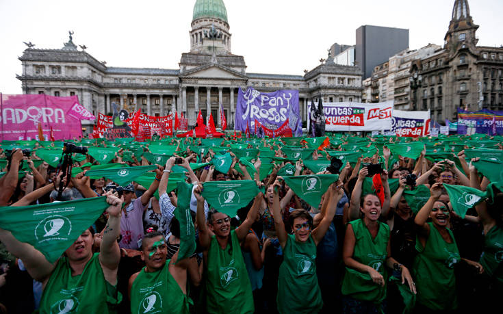 Εκατοντάδες γυναίκες διαδήλωσαν χθες Τρίτη μπροστά από το κοινοβούλιο στο Μπουένος Άιρες κρατώντας πράσινα φουλάρια ζητώντας τη νομιμοποίηση της άμβλωσης στην Αργεντινή, μετά την απόρριψη του σχετικού νομοσχεδίου πέρυσι από τη Γερουσία.