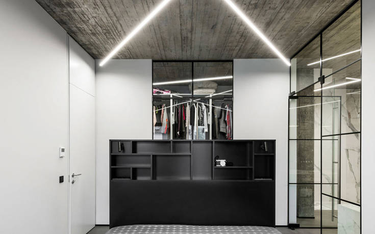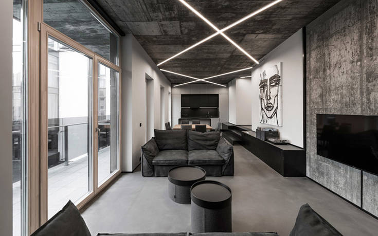 Οι λιτές φορμαλιστικά γραμμές επιτείνονται από την επίσης μινιμαλιστική επίπλωση με τα απολύτως αναγκαία, κάνοντας το 150 τ.μ. διαμέρισμα να φαίνεται πολύ μεγαλύτερο απ’ όσο πράγματι είναι.