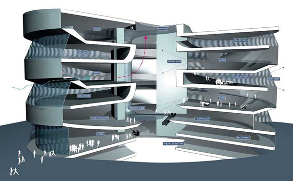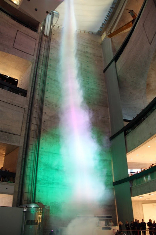 Η δίνη με ύψος 34,4 μέτρων που κόβει την ανάσα δεν σχεδιάστηκε μάλιστα ως αξιοθέατο, αλλά η χρήση της είναι εντελώς λειτουργική: σε περίπτωση πυρκαγιάς, ο ρόλος του στροβίλου είναι να απομακρύνει τον καπνό από το κτίριο!