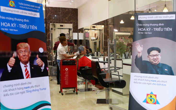Και δεν είναι μόνο τα μπαρ που επιχειρούν να εκμεταλλευτούν τη συνάντηση κορυφής. Ένας κουρέας στο Ανόι προσφέρει δωρεάν κούρεμα σε όποιον ενδιαφέρεται να αποκτήσει την ίδια κόμμωση με τον Τραμπ και τον Κιμ.