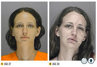 Οι αποκρουστικές φωτογραφίες, που παρουσιάζουν πρόσωπα πριν και μετά τη χρόνια χρήση, απαρτίζονται μάλιστα από αστυνομικές φωτογραφίες των χρηστών, κατά τη διάρκεια των πολλαπλών τους συλλήψεων από τις Αρχές.