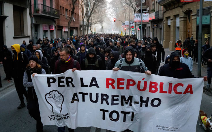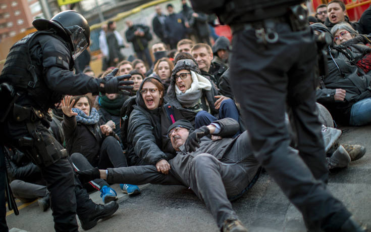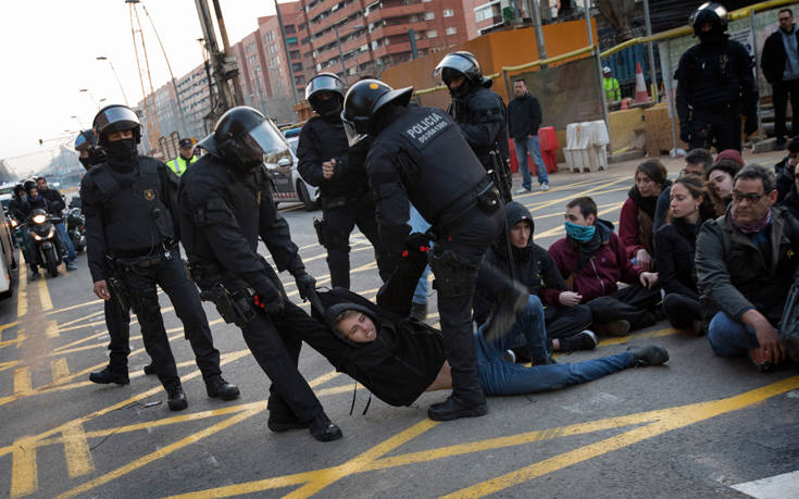 Αστυνομικοί των μονάδων αντιμετώπισης ταραχών συγκρούστηκαν σήμερα με διαδηλωτές υπέρ της ανεξαρτησίας της Καταλονίας στη Βαρκελώνη, την ώρα που άλλοι ακτιβιστές έκαψαν λάστιχα αυτοκινήτων και προσπάθησαν να αποκλείσουν αυτοκινητοδρόμους στο βόρειο τμήμα της Ισπανίας, στο πλαίσιο των κινητοποιήσεων διαμαρτυρίας για τη δίκη των 12 αυτονομιστών ηγετών.