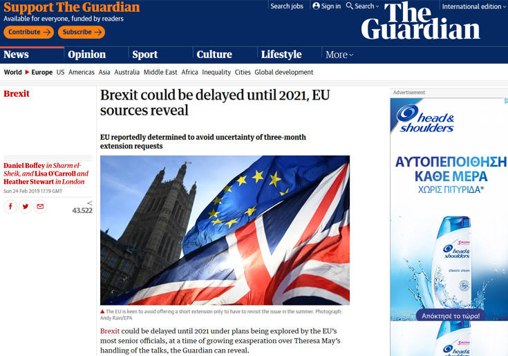 Όπως γράφει η εφημερίδα Guardian, το ενδεχόμενο παρατεταμένης περιόδου διαπραγματεύσεων φαίνεται να κερδίζει έδαφος στην ΕΕ, στην περίπτωση που η Μέι ζητήσει τελικά από τις Βρυξέλλες παράταση των διαπραγματεύσεων, λόγω του κοινοβουλευτικού αδιεξόδου.