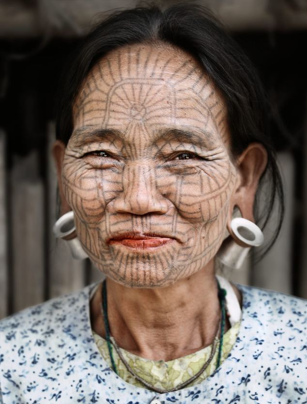 Τατουάζ καλύπτουν όλο της το πρόσωπο ως ένδειξη ομορφιάς και γοητείας. Η ηλικιωμένη αυτή γυναίκα από τη Βιρμανία με τα «σημάδια» στο πρόσωπό της είναι μία από τις τελευταίες της φυλής της που ακολούθησαν τη συγκεκριμένη παράδοση.