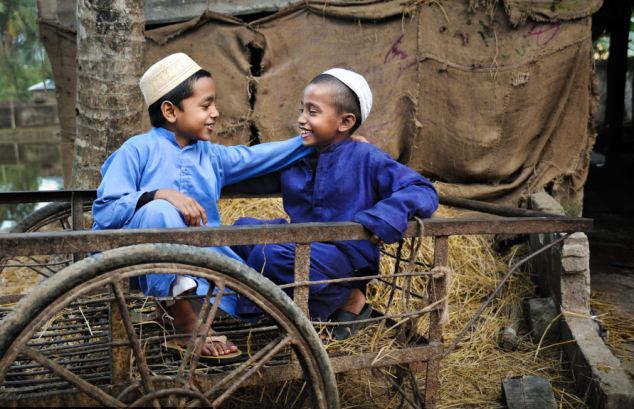 Οι καλύτεροι φίλοι: Δύο μαθητές παίζουν έξω από το τζαμί στην περιοχή Srimangal