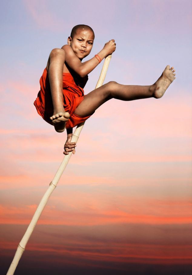 Επτά νεαροί μοναχοί στο μοναστήρι Yangon