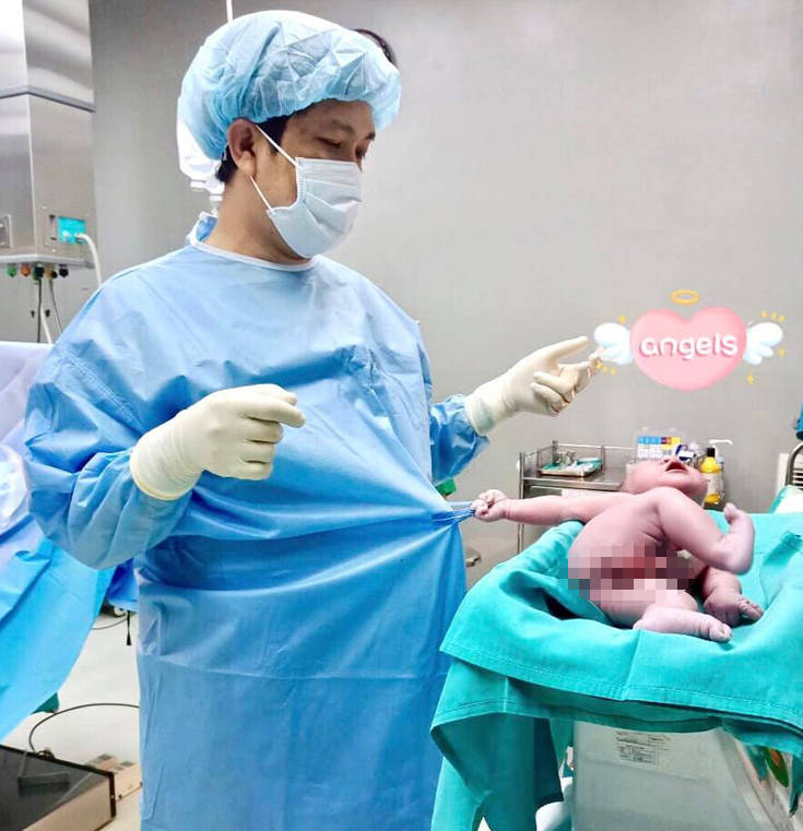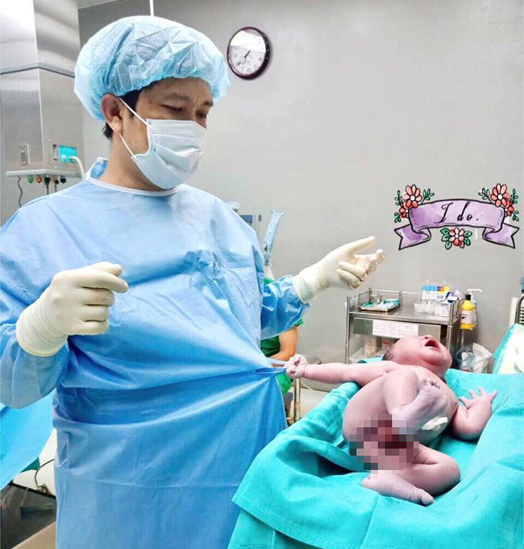 Σύμφωνα με την Daily Mail, η φωτογραφία τραβήχτηκε λίγα λεπτά μετά τη γέννηση του νεογέννητου αγοριού, σε Νοσοκομείο του Βιετνάμ, τον περασμένο μήνα.