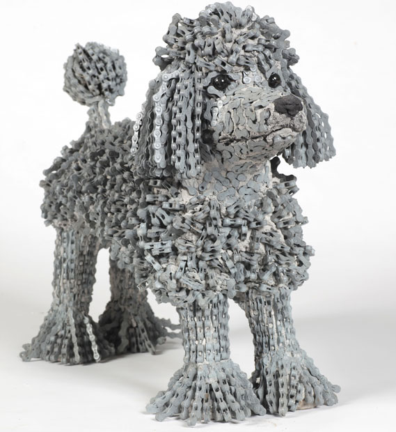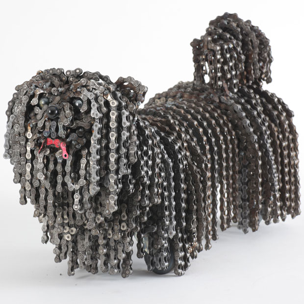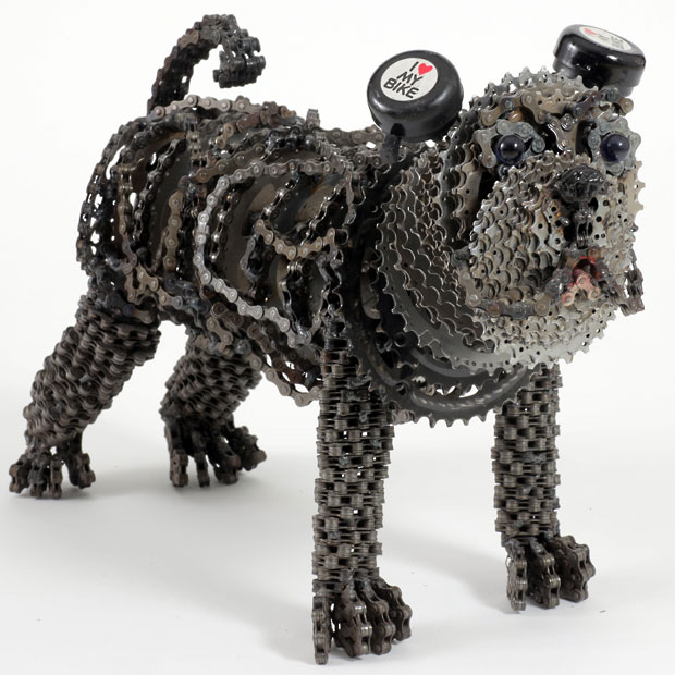 H ισραηλινή καλλιτέχνις δημιούργησε λοιπόν μια σειρά από σκύλους φτιαγμένους κυριολεκτικά από… «ατσάλι, καθώς απαρτίζονται από αντικείμενα που αποτελούσαν κάποτε εξαρτήματα ποδηλάτων, όπως για παράδειγμα, αλυσίδες, πεντάλ και σέλες. Η Nirit συλλέγει τα άχρηστα αυτά για άλλους αντικείμενα από γκαράζ και καταστήματα ποδηλάτων στο Τελ Αβίβ.