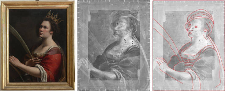 Μια τέτοια ανακάλυψη έγινε και στον πίνακα που αναπαριστά την «Αγία Αικατερίνη των Μεδίκων» της ζωγράφου Αρτεμισίας Τζεντιλέσκι. Χάρη στις ακτίνες Χ, όπως αναφέρει η ιταλική εφημερίδα La Repubblica και αναμεταδίδει το AΜΠΕ, αποκαλύφθηκε πως κάτω από το πορτραίτο κρύβονται άλλα δύο: μία προηγούμενη εκδοχή του θέματος και μία αυτοπροσωπογραφία της καλλιτέχνιδος.