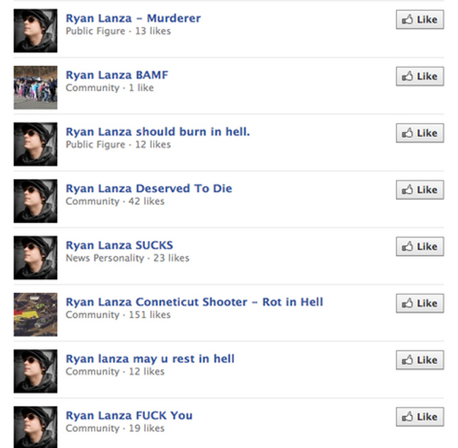 Όμως οι πρώτες πληροφορίες έκαναν λόγο για έναν 24χρονο ονόματι Ryan Lanza, που όταν εντοπίστηκε στο Facebook δέχτηκε σωρεία επιθέσεων και χαρακτηρισμών όπως «δολοφόνος» και «αναπαύσου στην κόλαση».
