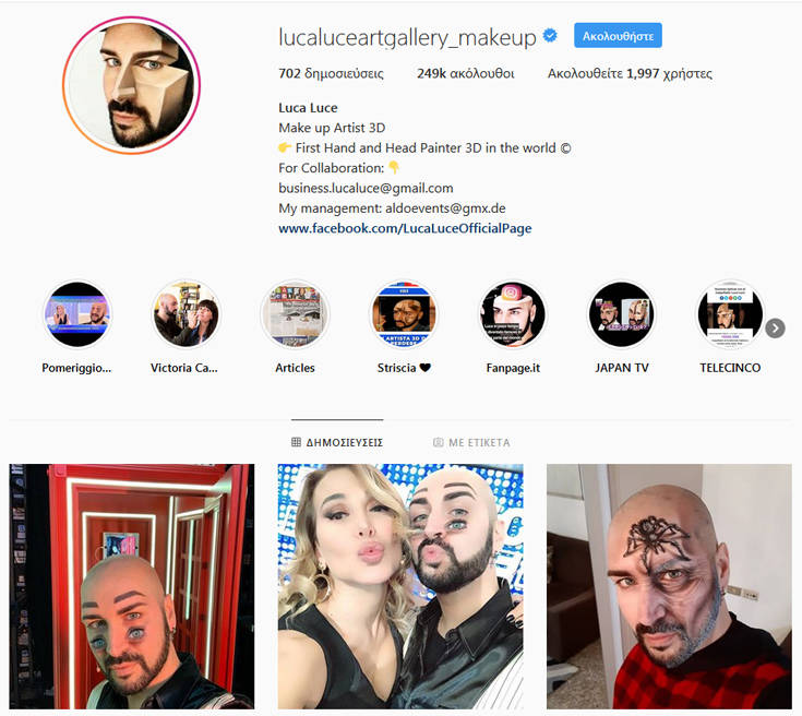 Σήμερα ο λογαριασμός lucaluceartgallery_makeup στο Instagram έχει 240.000 followers.