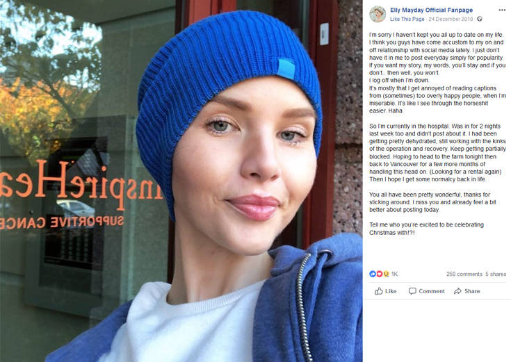 Η Elly Mayday, ένα plus size μοντέλο που είχε δημόσια παρουσιάσει τη μάχη της με τον καρκίνο στις ωοθήκες, πέθανε σε ηλικία 30 ετών, περίπου 6 χρόνια μετά την πρώτη διάγνωση της ασθένειας.