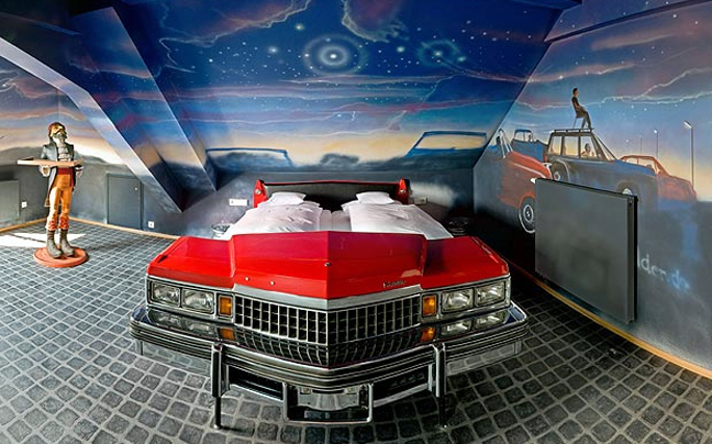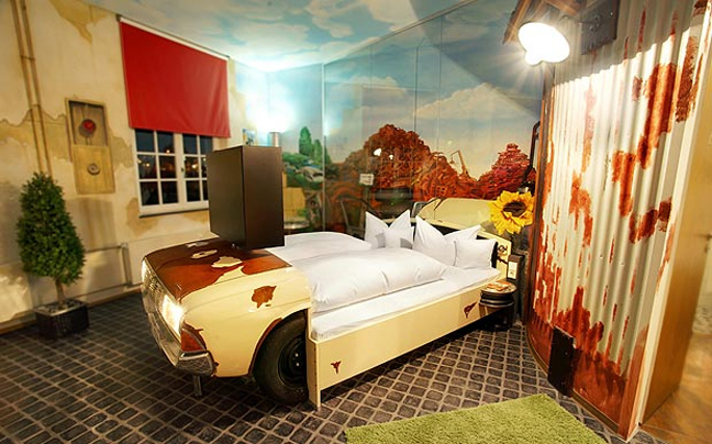 Οι δέκα σουίτες ενός ξεχωριστού ξενοδοχείου στη Γερμανία περιμένουν τους λάτρεις των αυτοκινήτων. Το ξενοδοχείο V8 Hotel βρίσκεται στην πόλη της… Porsche και της Mercedes, Στουτγάρδη και διαθέτει κρεβάτια, τα οποία έχουν κατασκευαστεί από κλασικά οχήματα του παρελθόντος.