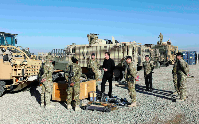 Στη στρατιωτική βάση Camp Bastion στη νότια επαρχία Χελμάντ στο Αφγανιστάν βρέθηκε ο βρετανός πρωθυπουργός Ντέιβιντ Κάμερον. Ο Κάμερον τόνισε ότι οι στρατιώτες δεν πλήρωσαν μάταια ένα «υψηλό τίμημα» σε αυτή τη χώρα, σύμφωνα με ανακοίνωση που εκδόθηκε από το γραφείο του.