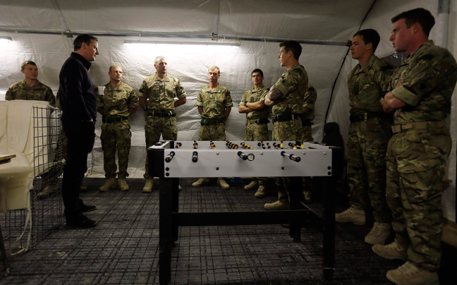 Στη διάρκεια αυτής της επίσκεψη-αστραπή ο Κάμερον παρέστη σε λειτουργία και έπαιξε πιγκ-πογκ με τους στρατιώτες. Ανακοίνωσε επίσης ότι 283 εκατομμύρια ευρώ θα επενδυθούν στον εξοπλισμό, κυρίως για την ανίχνευση εκρηκτικών μηχανισμών.