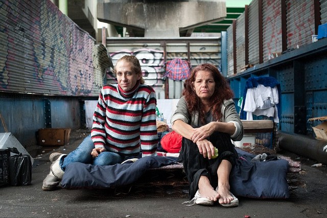 Ο Michael (αριστερά) και η Pam (δεξιά) ζουν σε μια τρώγλη κάτω από τις ράγες του τρένου. Η Pam είναι «εθισμένη στα χρήματα που βγάζει από την πορνεία γιατί είναι εθισμένη στα ναρκωτικά, παρότι σιχαίνεται το σεξ».