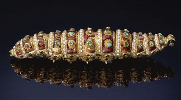 Η λεπτομερώς σχεδιασμένη και διακοσμημένη με χρυσό και διαμάντια κάμπια χρονολογείται κάπου πίσω στο 1820. Την κατασκεύασε ο ελβετός ωρολογοποιός Henri Maillardet για να την πουλήσει σε κινέζους αριστοκράτες της εποχής.