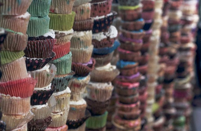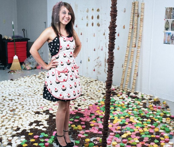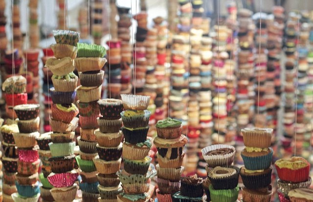 Η Leah Foster από το Dilley του Τέξας είχε μια πολύ… νόστιμη έμπνευση! Η νεαρή φοιτήτρια στη σχολή School of Visual Arts του Μανχάταν, στη Νέα Υόρκη, αποφάσισε να ψήσει δεκάδες χιλιάδες χρωματιστά cupcakes και να τα κρεμάσει από σχοινιά.