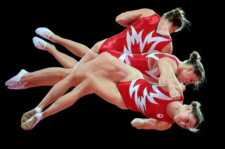 Η αθλήτρια στο τραμπολίνο Rosannagh Maclennan από τον Καναδά από τρεις διαφορετικές οπτικές γωνίες