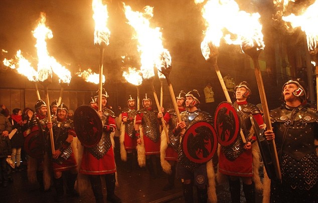 Επτά χιλιάδες άτομα με στολές των Βίκινγκς και αναμμένους πυρσούς διέσχισαν τους δρόμους του Εδιμβούργου. Οι εκδηλώσεις θα κορυφωθούν αύριο το βράδυ με ένα συναρπαστικό σόου πυροτεχνημάτων πάνω από το επιβλητικό κάστρο του Εδιμβούργου και με συναυλίες από γνωστά συγκροτήματα όπως οι Simple Minds.
