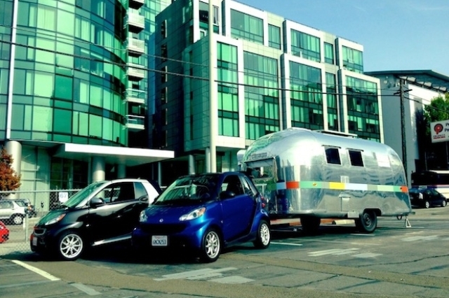 Η εταιρεία Climb Real Estate στο Σαν Φρανσίσκο πήρε ένα τροχόσπιτο του 1964 και το μετέτρεψε σε χώρο εργασίας εν κινήσει. Το ανακαίνισε πλήρως δίνοντας ένα ολοκαίνουριο look και στο εσωτερικό έβαλε λευκή επίππλωση με τόνους από χρωματιστά αξεσουάρ. Στο χώρο υπάρχει επίσης μία τηλεόραση επίπεδης οθόνης και καθιστικό.