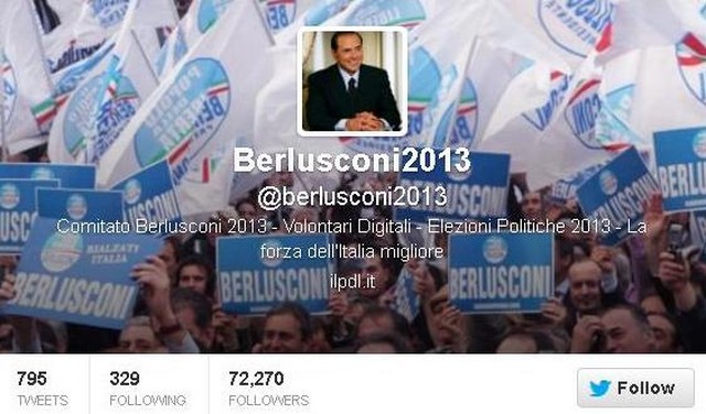 Υποψίες δημιούργησε σε ορισμένους κύκλους η εντυπωσιακή απήχηση που είχε ένα «μη επίσημο προφίλ» του Σίλβιο Μπερλουσκόνι στον ιστότοπο κοινωνικής δικτύωσης Twitter, το οποίο, πάντως, δημιουργήθηκε από μια ομάδα εθελοντών στην προεκλογική εκστρατεία του Λαού της Ελευθερίας (PdL), με την έγκριση του κόμματος του πρώην πρωθυπουργού της Ιταλίας.