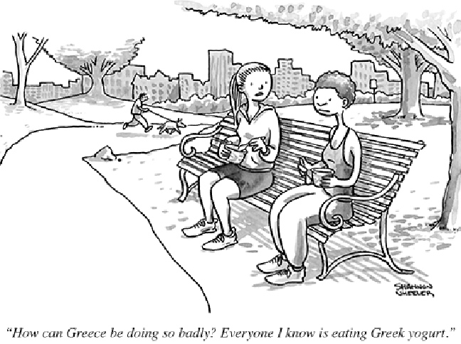 Η λεζάντα που το συνοδεύει γράφει πάντως χαρακτηριστικά: «Πως και τα πηγαίνει τόσο άσχημα η Ελλάδα; Αφού όποιος ξέρω τρώει ελληνικό γιαούρτι!».
