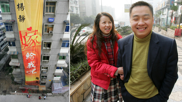 Ένα μπάνερ 25 μέτρων χρειάστηκε για να πει τις πολυπόθητες λέξεις ο Yang Jing, το οποίο και κρέμασε σε κεντρικό κτίριο της πόλης όπου ζει! Κανείς δεν μπορούσε να φτιάξει ένα τόσο μεγάλο κουλουράκι της τύχης για να κρύψει μέσα ο ερωτευμένος τα πελώρια αισθήματά του…