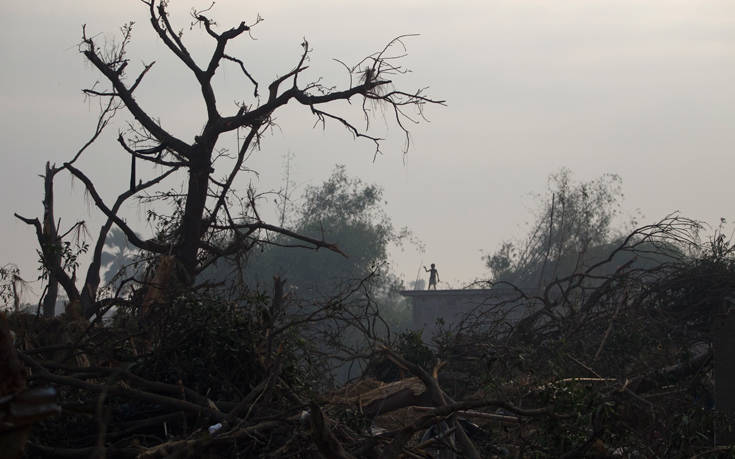 Παιδί στην ταράτσα σπιτιού περιμένει βοήθεια, μετά τη σφοδρή καταιγίδα που σάρωσε το νότιο Νεπάλ αφήνοντας πίσω της δεκάδες νεκρούς και πολλούς τραυματίες.