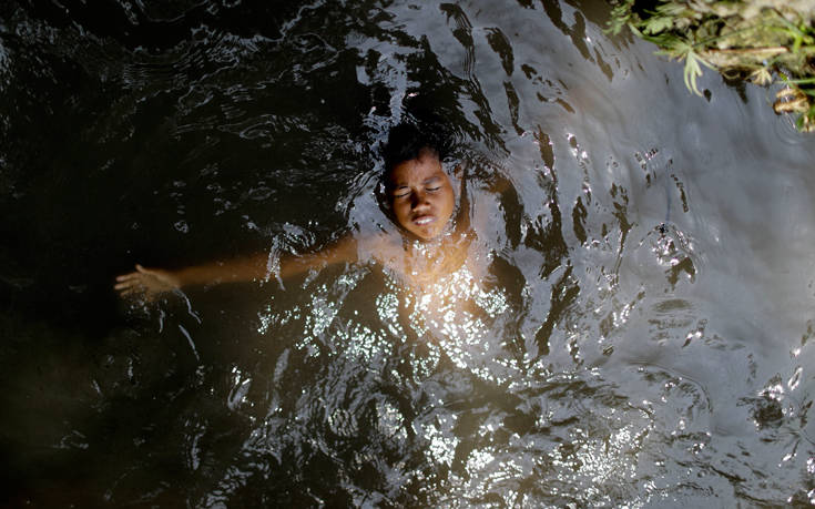 Ένα παιδί κάνει το μπάνιο του σε ρυάκι στο Καράκας της Βενεζουέλας. Η χώρα αντιμετωπίζει τρομερά προβλήματα στις υποδομές της, ακόμη και στο πόσιμο νερό.