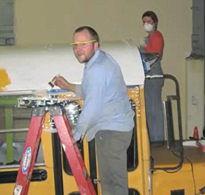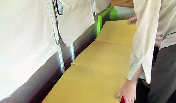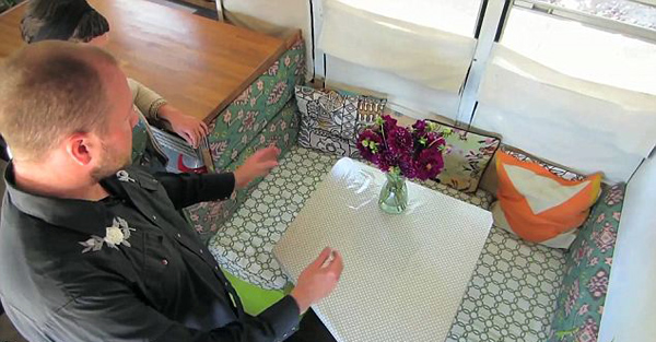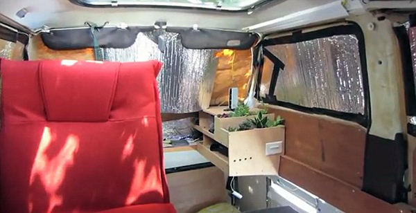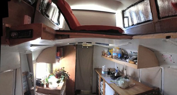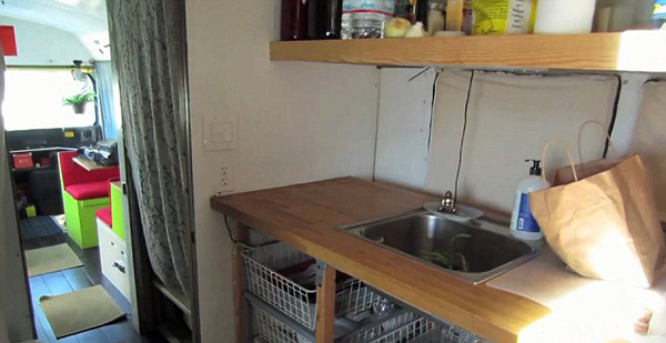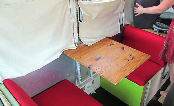 Τα χειροποίητα έπιπλα του… σχολικού έχουν σχεδιαστεί ειδικά για να χωράνε στο λεωφορείο, το οποίο αποκτήθηκε από το ζευγάρι για 3.000 δολάρια.