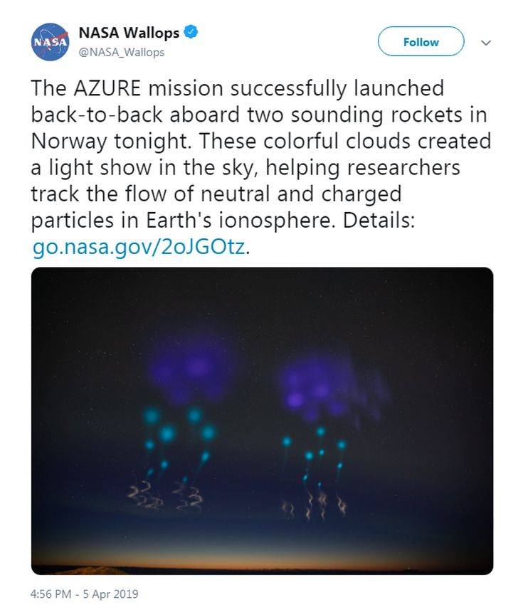 Μάλιστα η αμερικανική διαστημική υπηρεσία έχει προγραμματίσει να εκτοξεύσει άλλους επτά πυραύλους στη Νορβηγία τα επόμενα δύο χρόνια, οπότε ανάλογα φαινόμενα αναμένεται να παρατηρηθούν.