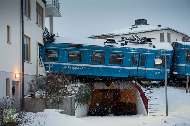 Όταν, όμως, έφτασε στον τερματικό σταθμό και μη γνωρίζοντας πώς να σταματήσει την ξέφρενη πορεία του, το τρένο εκτροχιάστηκε και κατέληξε στην κουζίνα ενός σπιτιού στο προάστιο Saltsjöbaden.
