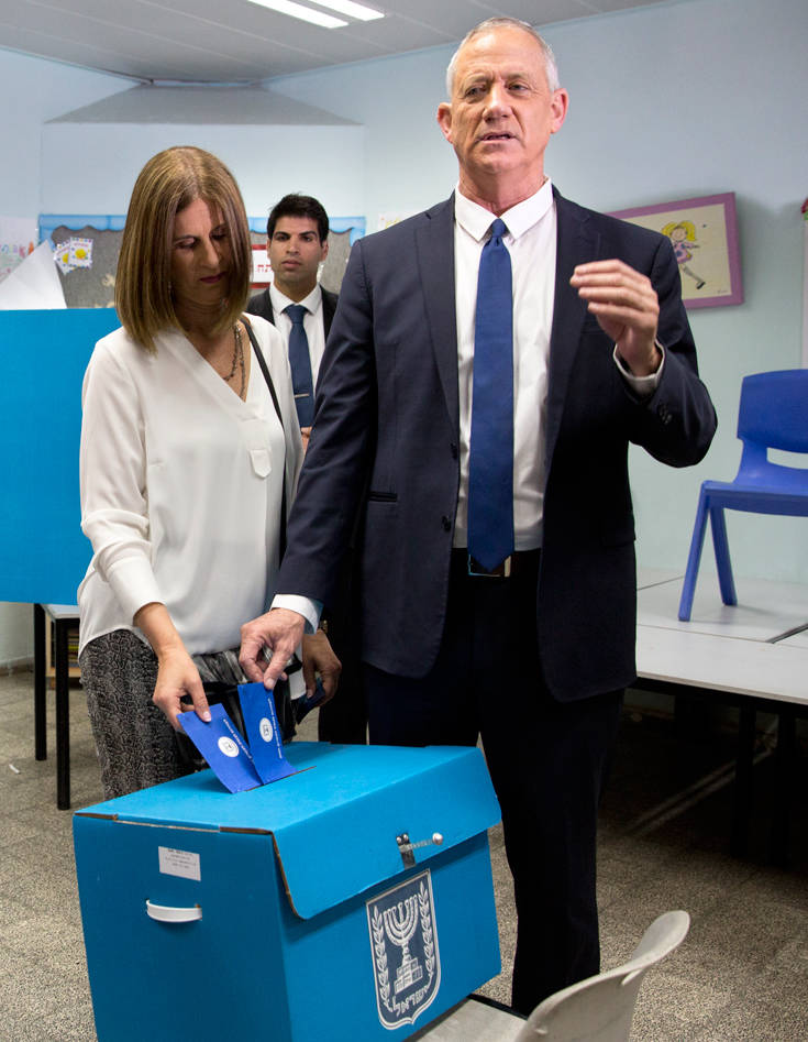 Ο Γκαντς είχε ψηφίσει νωρίτερα σε ένα άλλο σχολείο στο Ρος Χααγίν, όπου κατοικεί, κοντά στο Τελ Αβίβ. Στους δημοσιογράφους που συνωστίζονταν στο στενό εκλογικό τμήμα, δήλωσε «ευτυχής που τίθεται στην υπηρεσία του Ισραήλ» και υποσχέθηκε στους συμπολίτες του έναν «νέο δρόμο». Είχε και αυτός δίπλα του τη σύζυγό του.