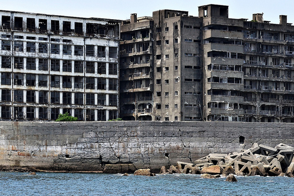 Η Mitsubishi έχτισε πελώριες πολυκατοικίες στο νησί για να στεγάσει τους εργάτες στον σταθμό παραγωγής, με τον περιορισμένο κατοικήσιμο χώρο να στοιβάζει τη μια οικογένεια πάνω στην άλλη και να τις αναγκάζει να μοιράζονται μπάνιο και κουζίνα.